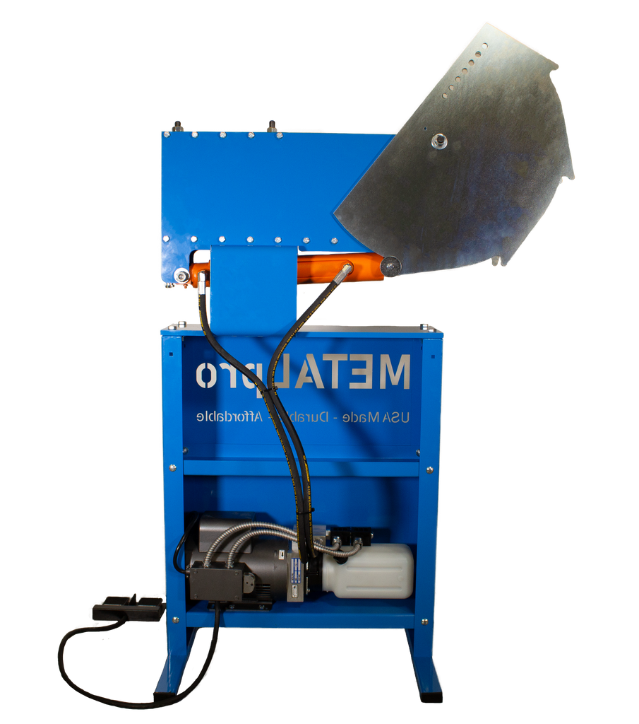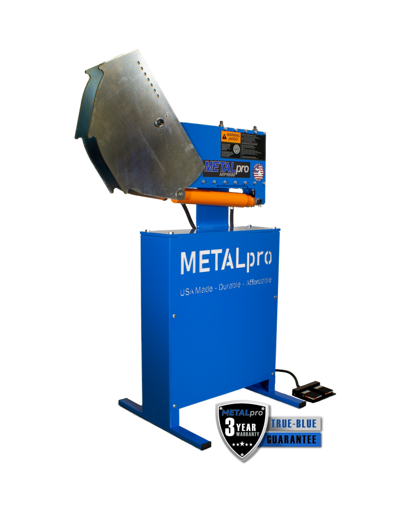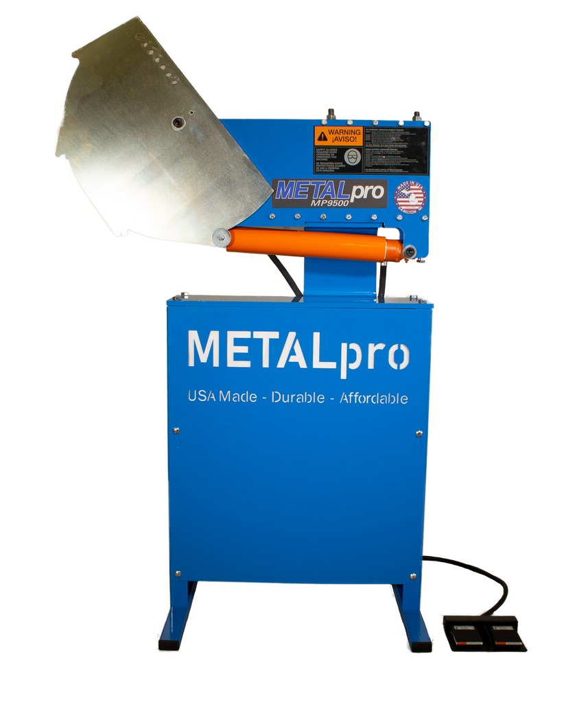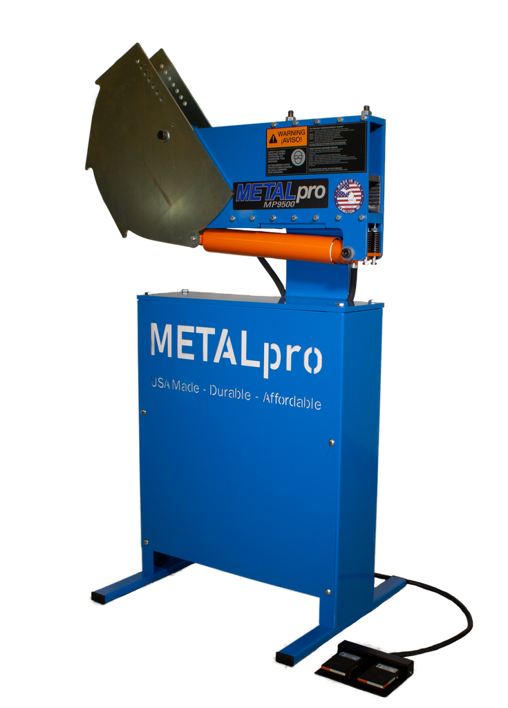 The MP9500 is a 180-degree hydraulic bender, powered by a 110V, single phase standard wall outlet or generator. This METALpro bender operates with a 3-piece bender die set to bend ½” – 2” round pipe and tube as well as square tube (DIES ARE SOLD SEPARATELY). Click on the “accessories” tab above to see available pipe and tube die sets for the MP9500. METALpro’s footswitch design controls a hydraulic power system. This machine is ready to accept any die set specific to your pipe or tube size needs. METALpro stands behind their machines with a three-year limited manufacturing warranty. All METALpro machines and accessories are proudly made in the USA and built to last.